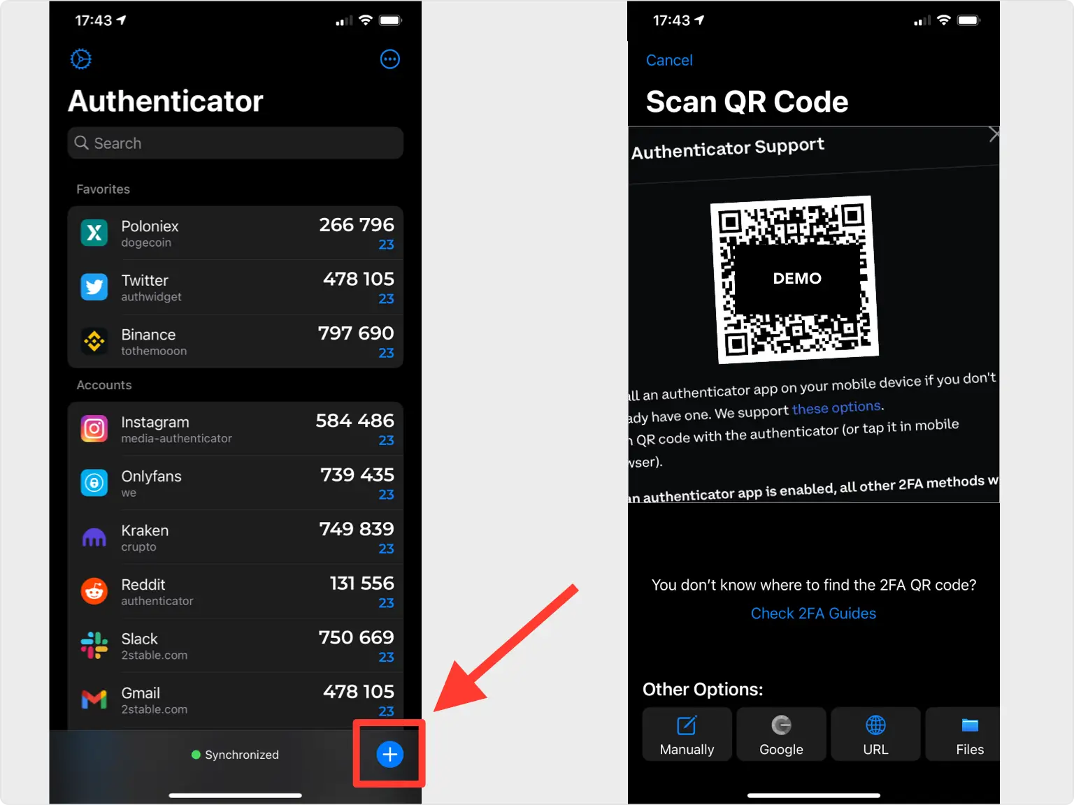 打开身份验证器应用,点击屏幕底部的加号按钮添加项目,然后将设备靠近电脑屏幕扫描二维码。如果无法扫描二维码,您可以从“文件”应用导入二维码。在身份验证器应用中点击加号,选择“文件” ,然后按照提示操作即可。